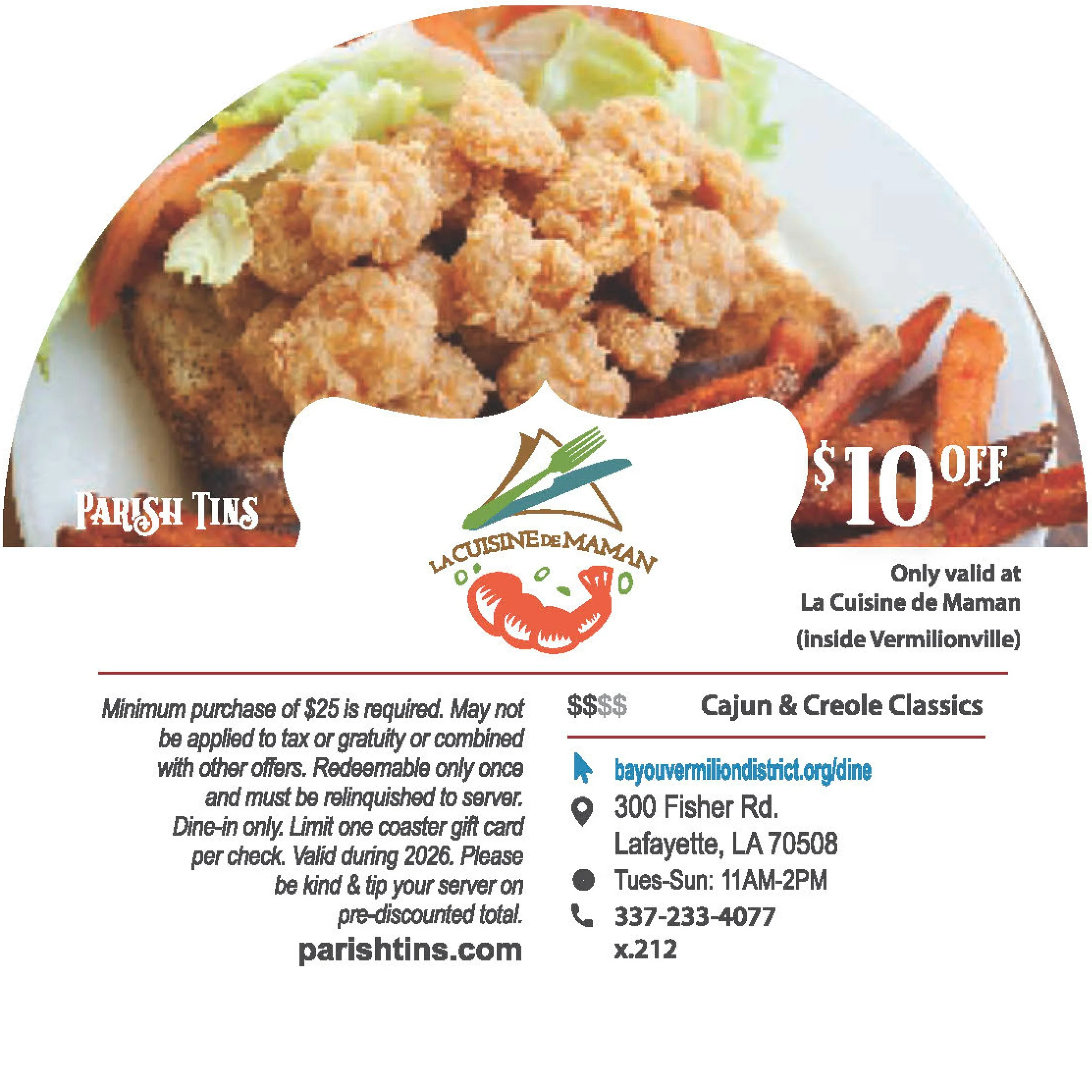 Local Cajun/Creole restaurant in Lafayette, LA.